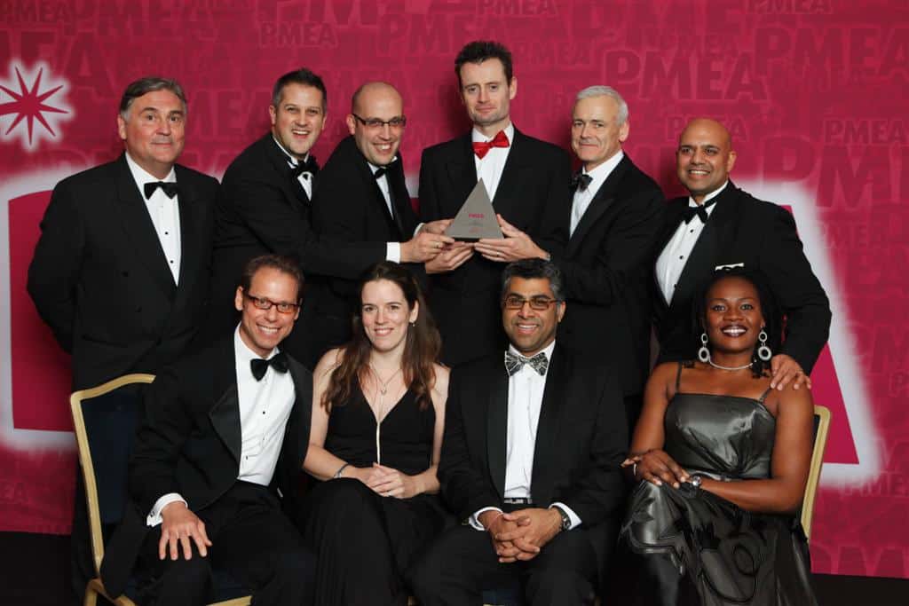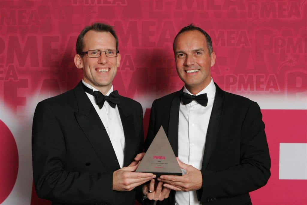 Michael Oliver collecting the award on behalf of Andrew Witty